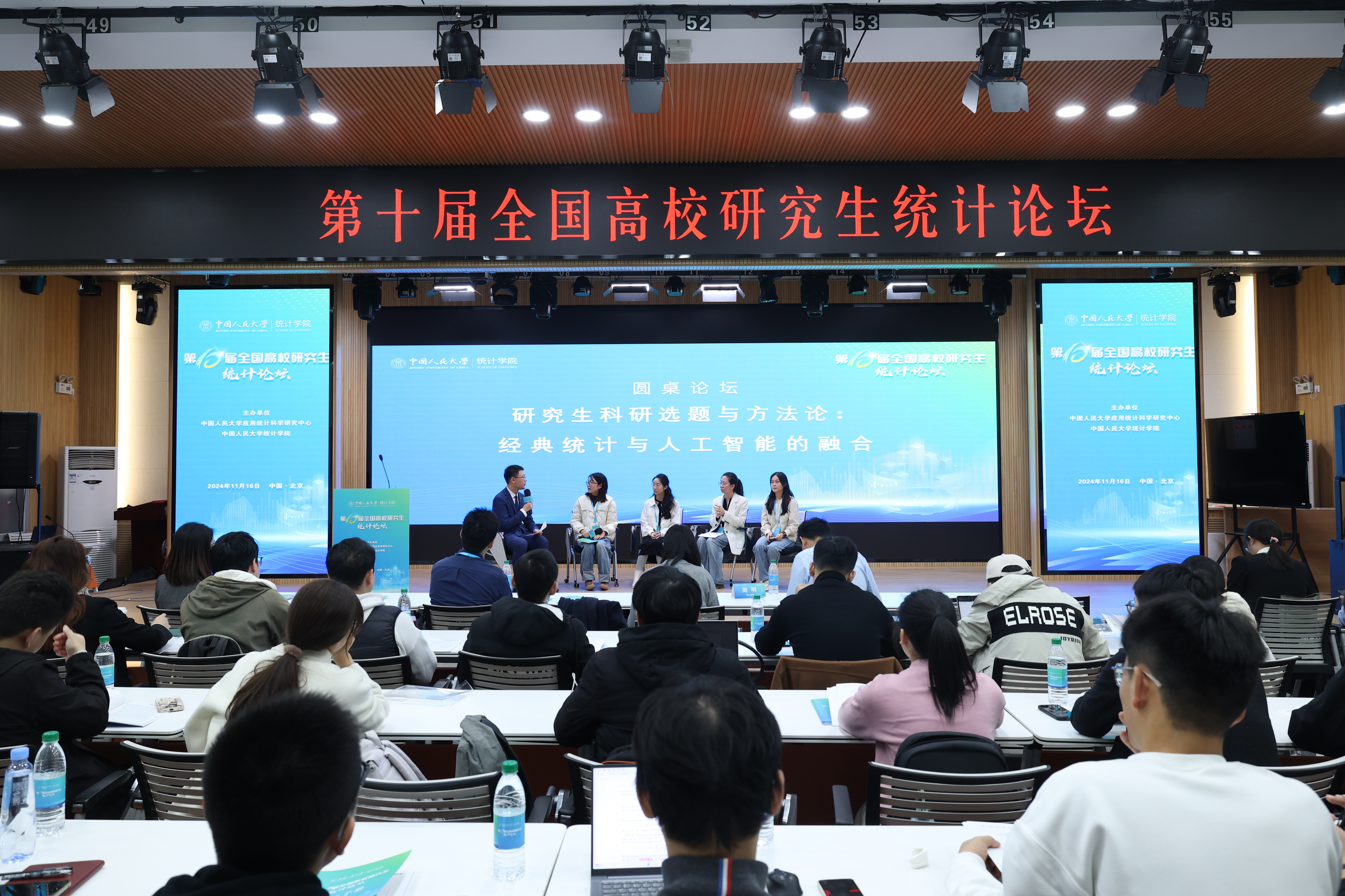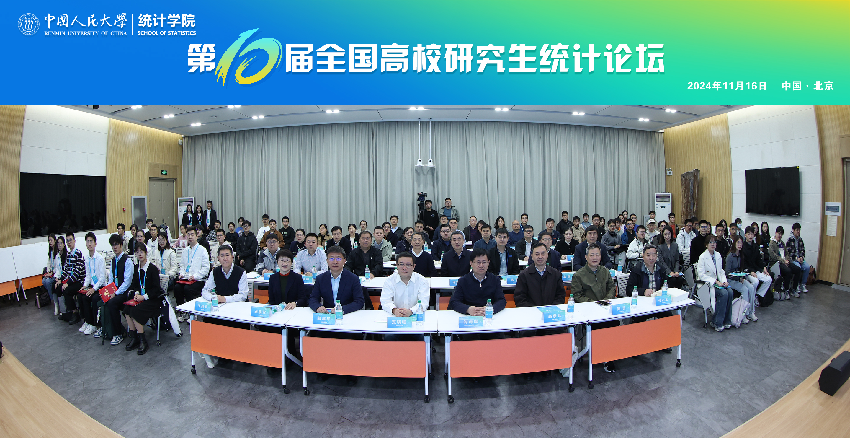 The National Postgraduate Forum on Statistics was jointly initiated by the School of Statistics at Renmin University of China and the National Postgraduate Innovation Statistics Alliance. Held annually since 2015, the 10th edition was co-organized by the Center for Applied Statistical Science and the School of Statistics at Renmin University of China. Over 100 leaders, guests, and representatives from universities such as Renmin University of China, Peking University, Tsinghua University, the Chinese Academy of Sciences, East China Normal University, Xiamen University, Nankai University, Northeast Normal University, Beijing Normal University, Dongbei University of Finance and Economics, Jiangxi University of Finance and Economics, Shanghai University of Finance and Economics, University of Science and Technology of China, Beijing University of Technology, University of International Business and Economics, Capital University of Economics and Business, Capital Normal University, Central University of Finance and Economics, Shanxi University of Finance and Economics, Jilin University of Finance and Economics, Lanzhou University of Finance and Economics, Chengdu University of Information Technology, Hebei University of Economics and Business, Minzu University of China, Guangdong University of Finance, Beijing Technology and Business University, Beihang University, Henan University of Economics and Law, and Tianjin University of Finance and Economics participated in the opening ceremony and main forum.