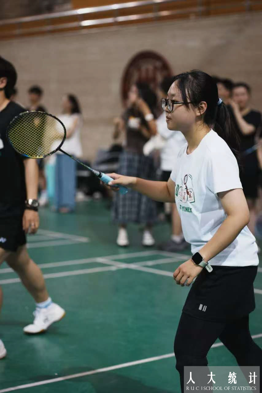 初来人大,很开心很荣幸地跟随师兄师姐们延续了三年两冠的辉煌。如今惜别在即,但是热爱不会挥手告别,愿越来越多统计学子可以加入统计羽球的大家庭,一同赓续统计白羽的辉煌!