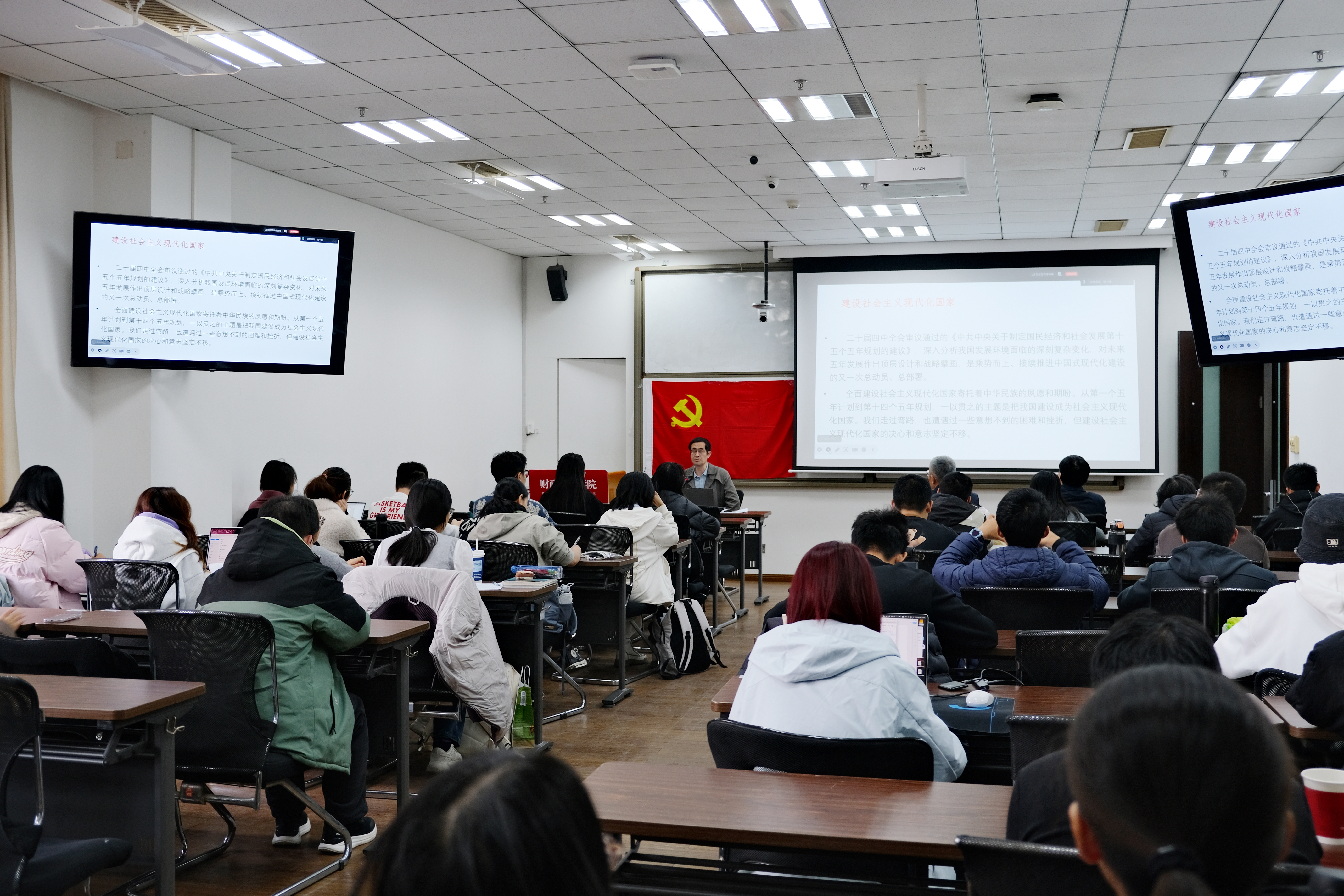 时间:2025-11-01为深入学习贯彻党的二十届四中全会精神,准确把握全会精神核心要义与“十五五”规划战略部署,夯实理论基础,10月28日下午,统计公司党委召开理论学习中心组(扩大)专题学习会,传达学习党的二十届四中全会精神。会议邀请了马克思主义公司教授宋友文作专家解读,公司党委书记黄一顺主持并讲话,公司领导班子成员、党委委员、师生党支部书记、党员代表和入党积极分子等参会学习。